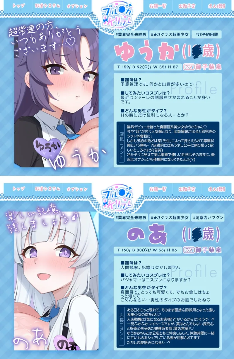 【Wチン媚び✨2.5時間】ブルアカJKリフレ ~W指名!ノアとユウカの裏OPご奉仕バトル~「先生?ノアと私、どっちを選ぶつもりですか?」「もちろん二人共♡ですよね♡」