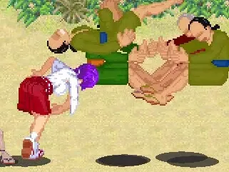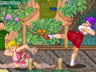 巫女のカンナと忍者のアオイの2人で一緒に進むベルトスクロールアクションゲーム。