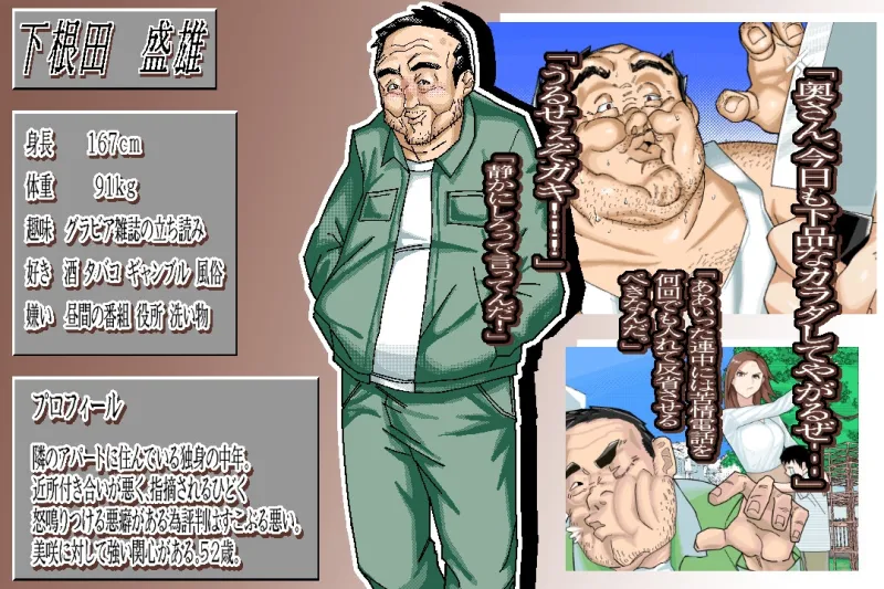 「下根田 盛雄」は友人もおらず職場では嫌われ、地位も金も無い最底辺中年男がありとあらゆる手段を使い