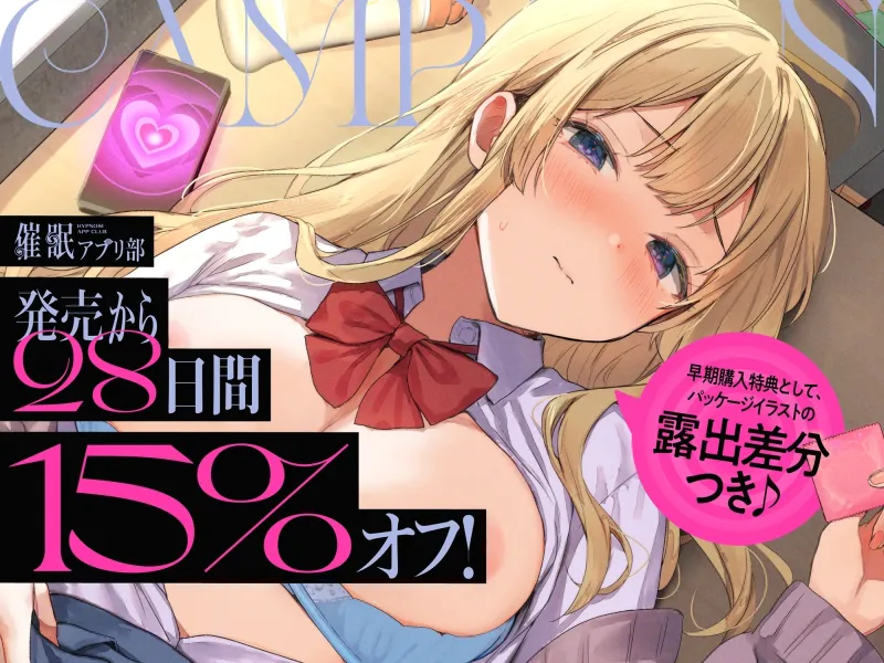 【早期購入特典付き】合意の上で、実はおまんこ性欲満点の恥ずかしがり屋JKを催眠してあまあま淫語おまんこする、“催眠アプリ部”【バイノーラル】