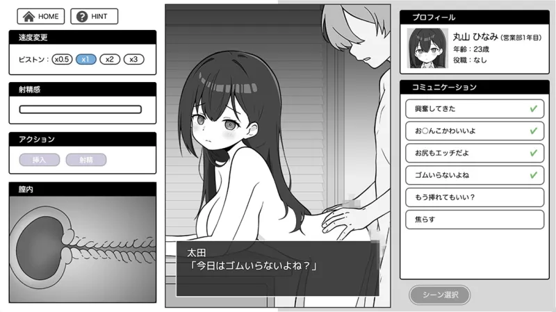 行為中も動作を止めずに会話ができるので、ライブ感のあるオフィスラブが体験できます。