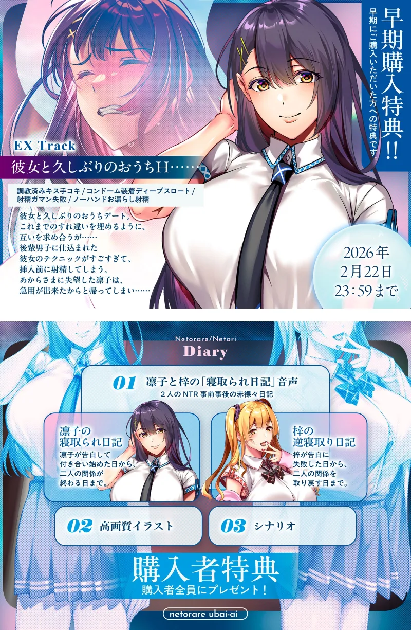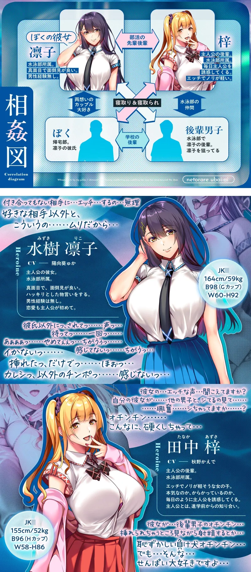 主人公(あなた)視点、後輩男子視点、のNTR音声をお楽しみください。