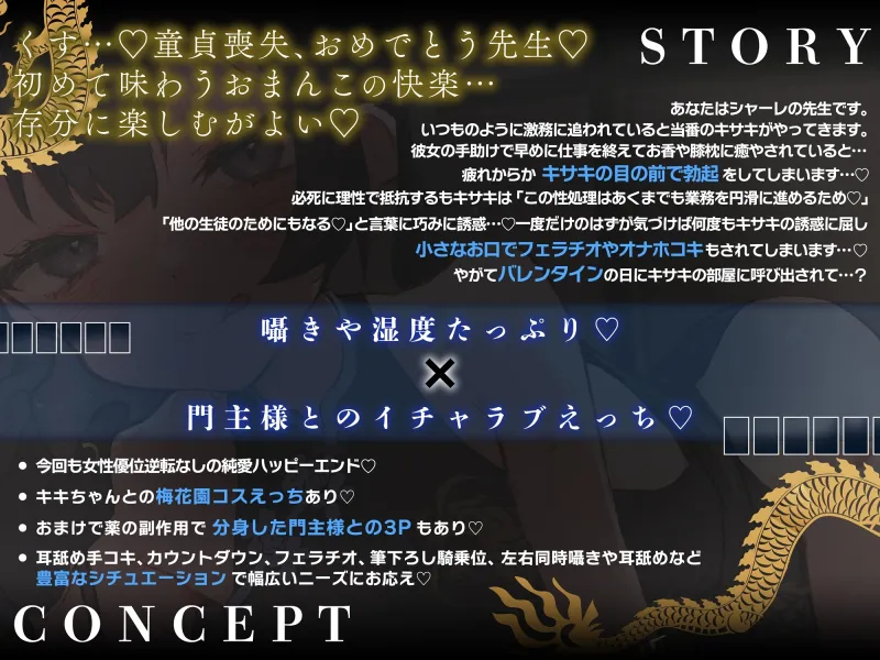 プレイ内容:膝枕、勃起バレ、無声囁き、手コキ、言葉攻め、キンタマ責め、カウントダウン、「イケ」連呼♡、射精、射精後に先生を寝かしつけ♡