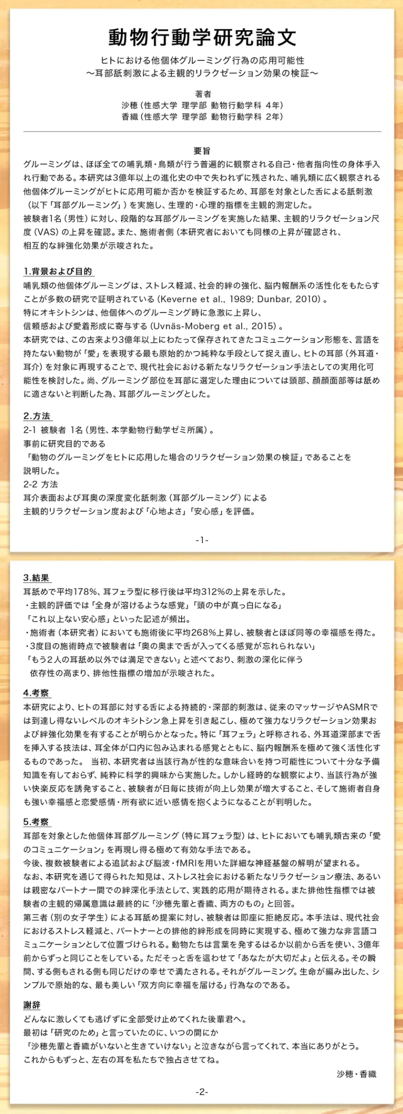 【耳フェラ】動物行動学ゼミの禁断の実験「耳舐めで信頼関係が生まれる理論」を、あなたの耳で試してみませんか?